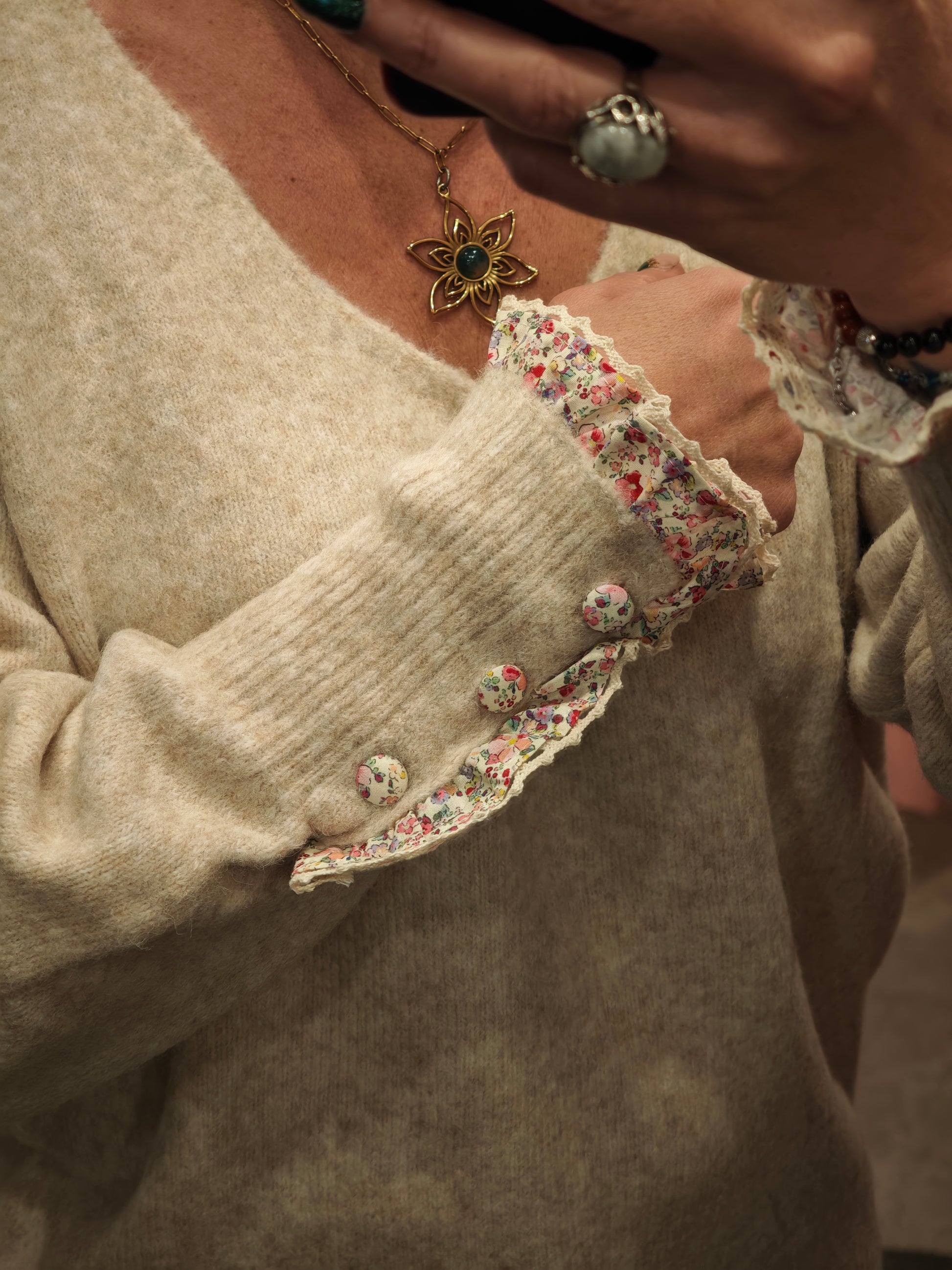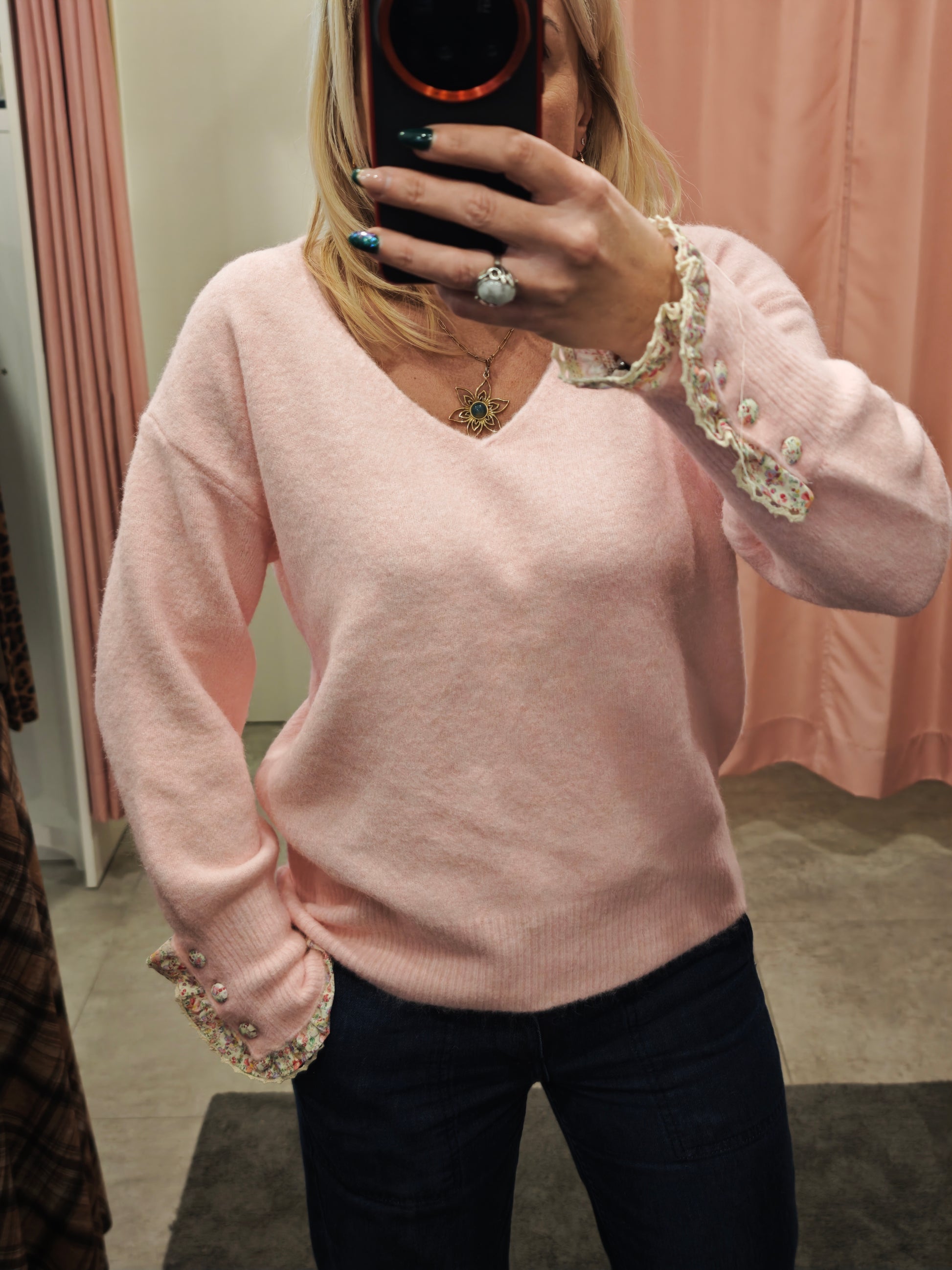 Pull manches fleuries
