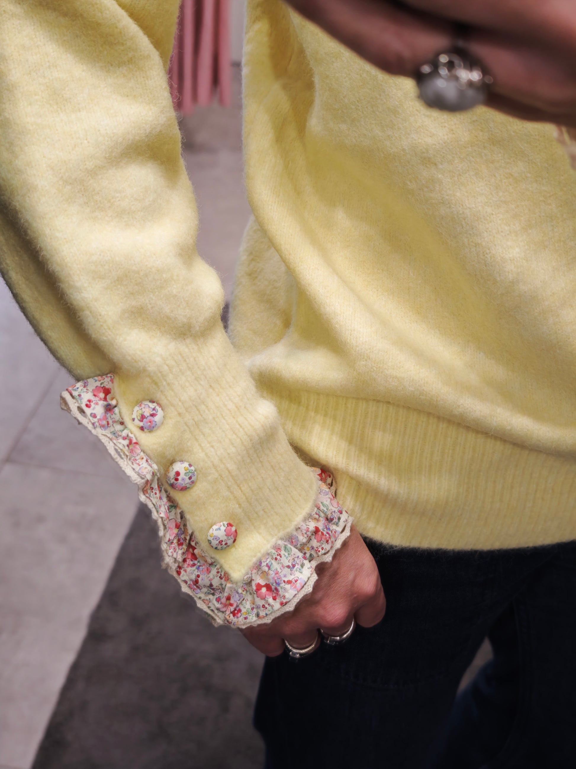 Magnifique pull a manche collerette et bouton fleuri.Découvrez le charme irrésistible de notre Pull Manches Fleuries, un magnifique vêtement à collerette, orné de boutons fleuris qui ajoutent une touche d'élégance. Sa taille unique, convenant jusqu'au 42/44, épouse avec grâce votre silhouette. Conçu en matériaux doux et extensibles, il promet confort et style à chaque occasion!
